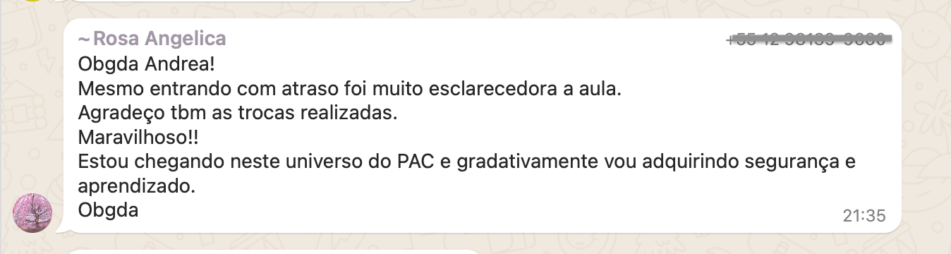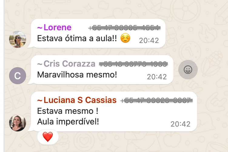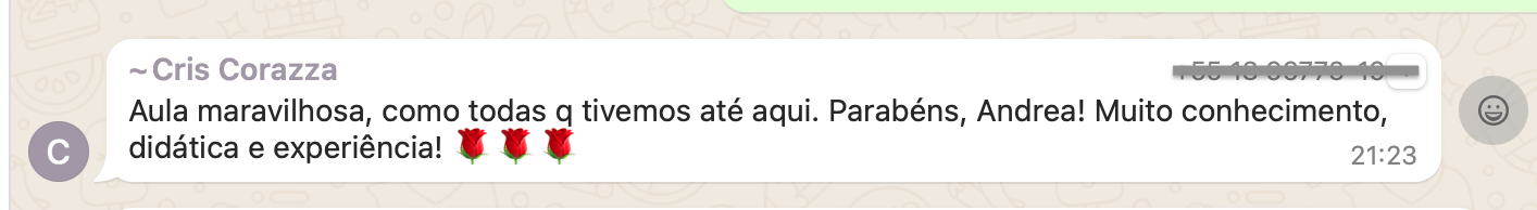 • Grupo exclusivo do WhatsApp com outras alunas e com a Andréa Paz.