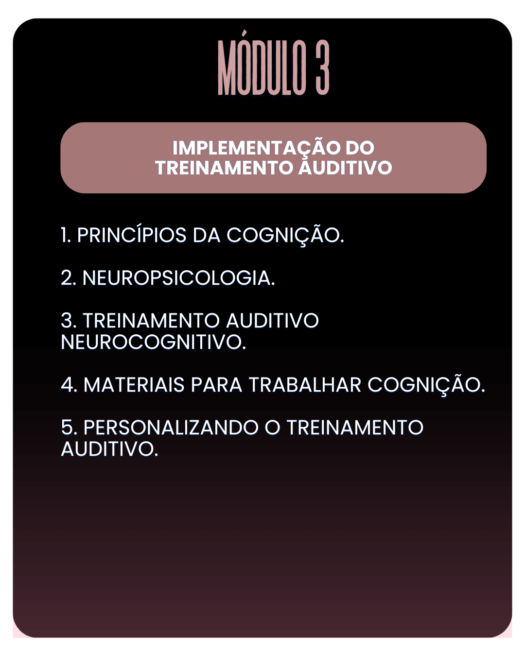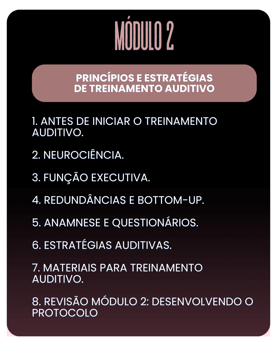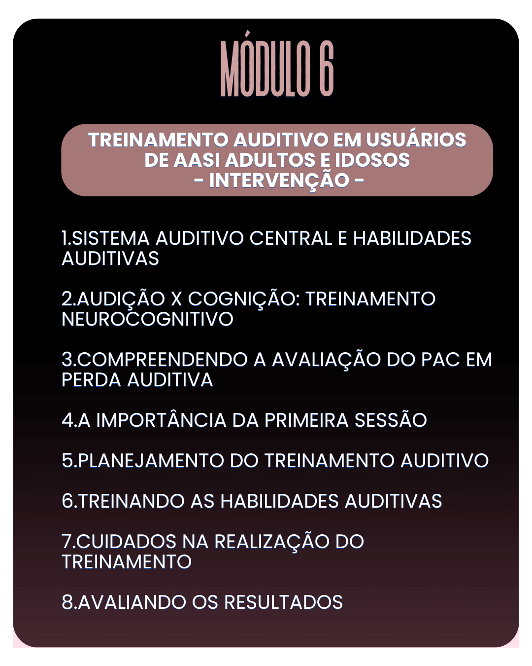 • Estruturar e aplicar protocolos completos de treinamento auditivo.